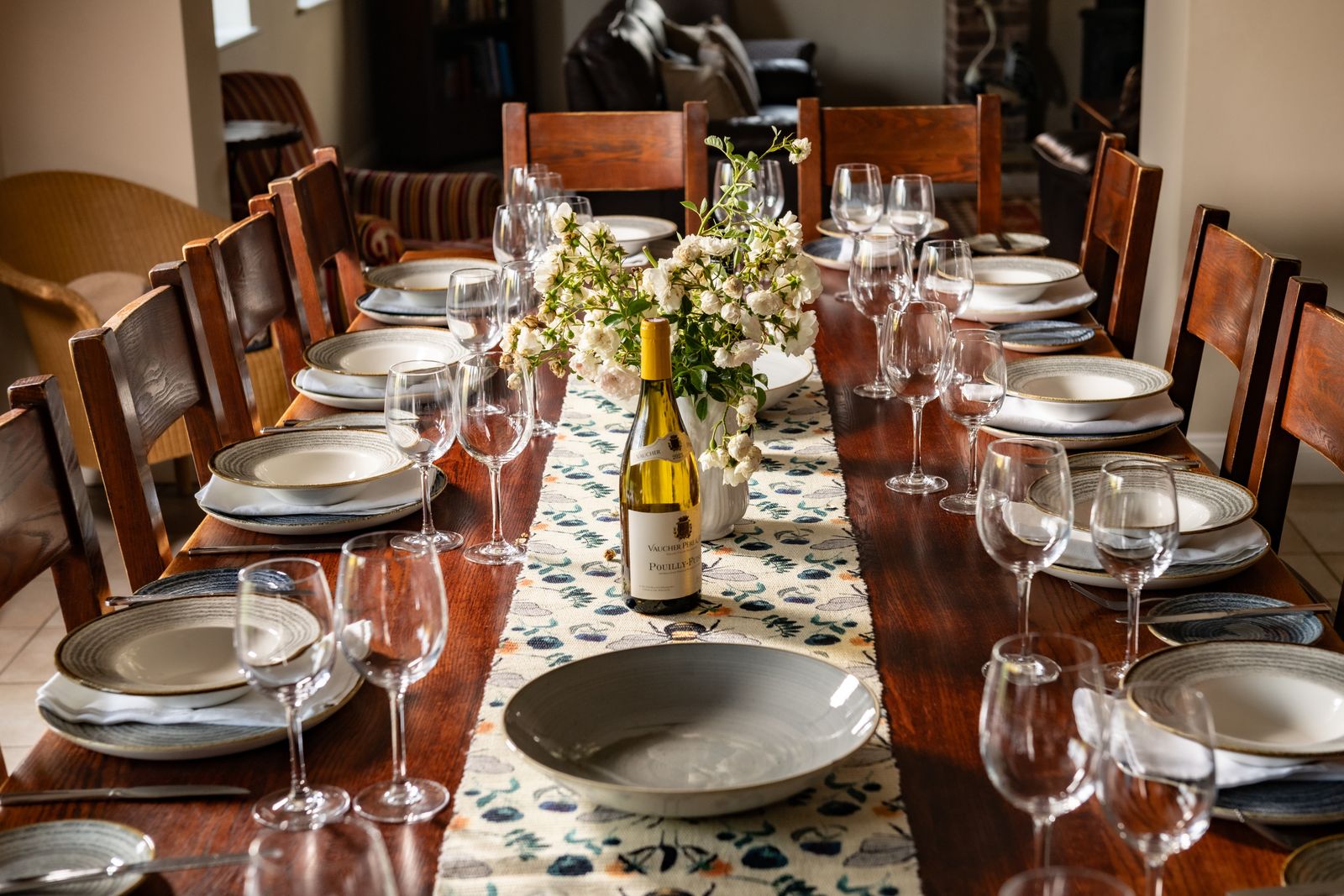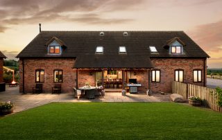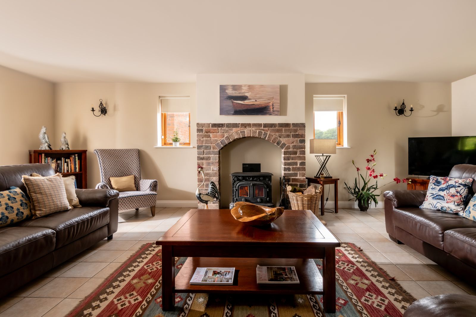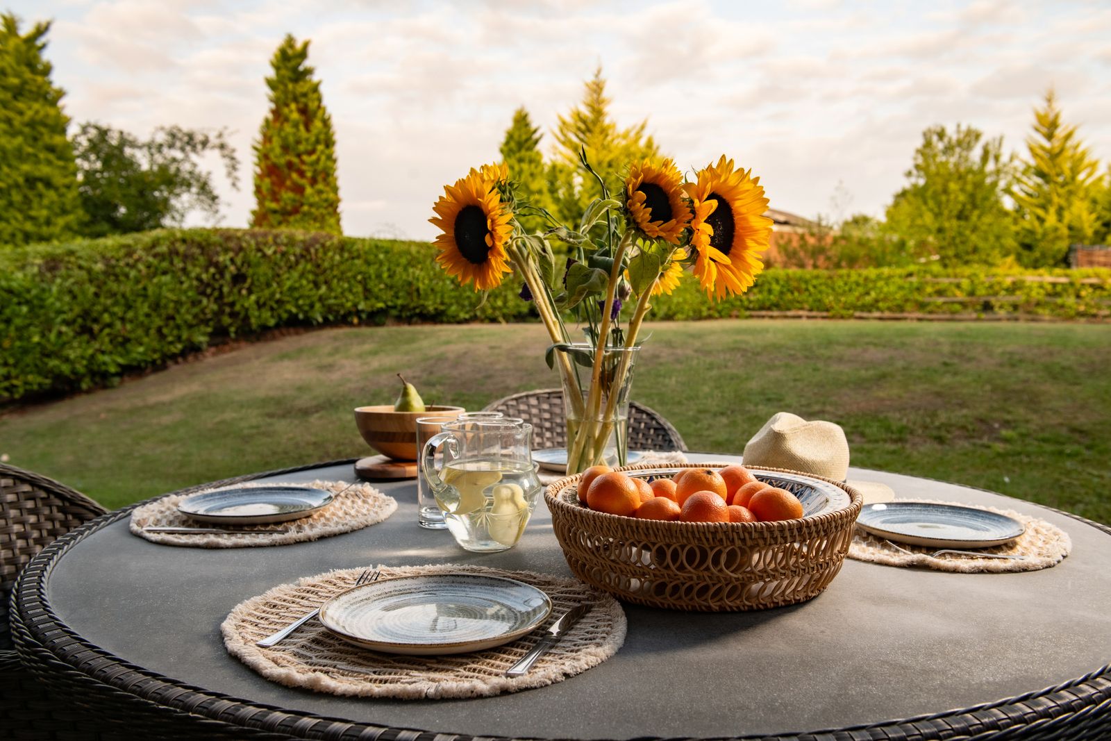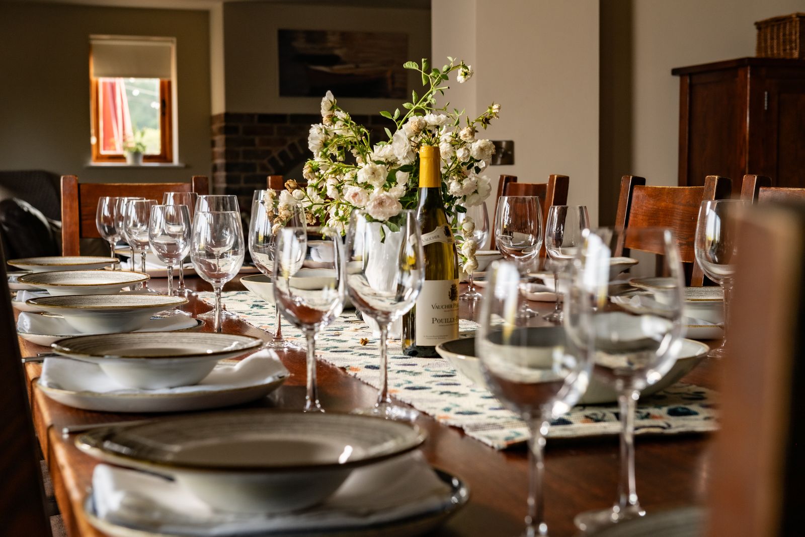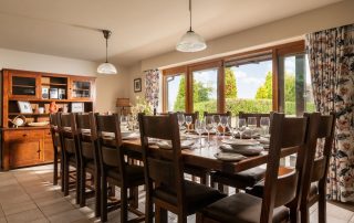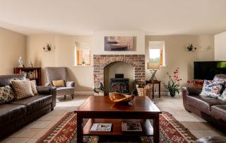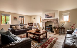 The open plan ground floor living space has a large well equipped family kitchen which leads to a glazed dining area overlooking the garden and patio.  The spacious lounge has a log burner for cosy nights in.  As well as 5 en-suite bedrooms on the first floor, Kingfisher has a ground floor en-suite bedroom with TV and outside access which is ideal for guests with restricted mobility.